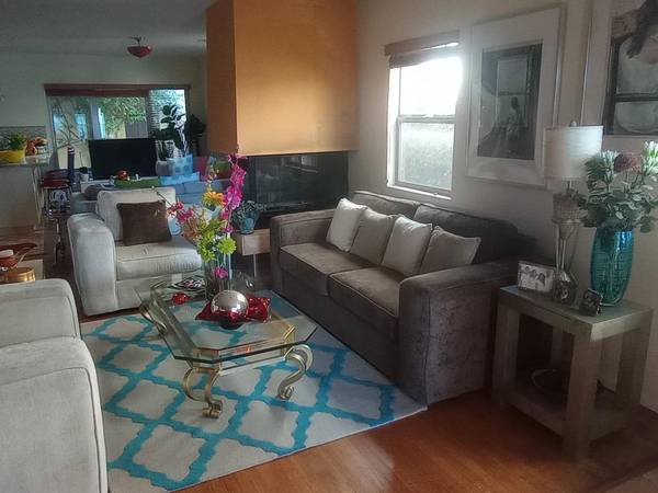 Beautiful bright furnished private bedrooms located on the second floor available for one FEMALE in a modern large (3 bedroom + 2 ½ bath 2,200 sq ft) designer townhouse located on a quiet tree-lined street. It is just 3 blocks s. of the Beverly Hills border, close to everything, parks, tennis courts, hospitals, shopping centers, restaurants, public transportation (Santa Monica Blue Bus & Metro Link) as well as the U.S. Post Office are locating just ½ a block away and the beach is about 15 minutes away!
