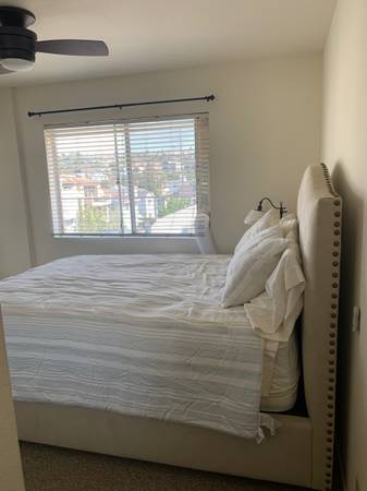 Furnished 1 bedroom 2 bathroom 2 story house. Livingroom, dining room, Kitchen, bedroom all upstairs. Entrance hallway and bathroom downstairs. Laundry in Garage. 3 blocks from beach. Close to Bars and restaurants.