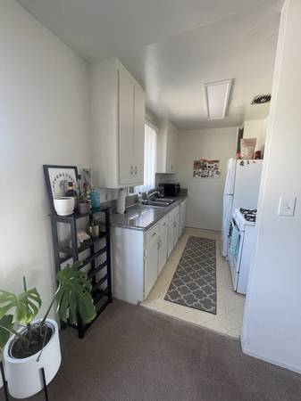 Amenities include pool, gated courtyard with grill/lounge, dishwasher, new carpet, on-site laundry, and on-site building manager. Street parking (no meters or permit needed) (parking spot available at additional cost).