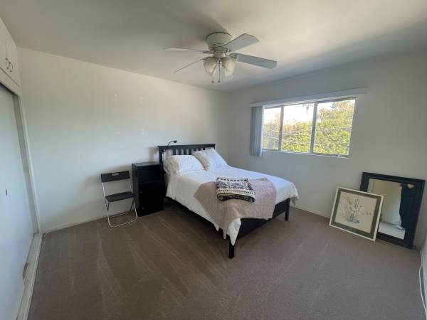 Master bedroom (11'7" x 12'4") in a quiet, clean apartment on San Vicente Blvd between 4th and 7th. Room is furnished with Full sized bed. Shared bathroom and fully furnished common areas. Month-to-month lease; short term preferred.