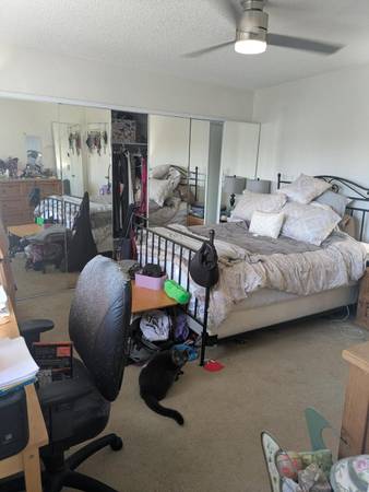 I need to temporarily move out of my apartment. Unfortunately where I am going I can't bring my 2 cats. Help me keep my fur babies at home! I am looking for someone to sublease my fully furnished master bedroom (in a 2bd/2ba apartment) for 3–6 months, possibly longer.