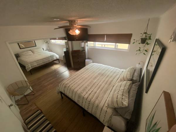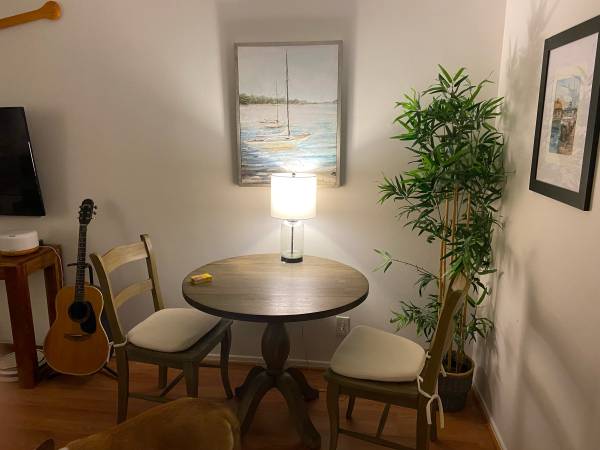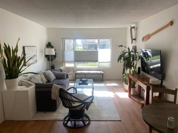 Hello! I am listing my beach getaway located on Speedway between Venice and Washington- steps from the sand, with the ocean in sight from your living room. Far enough away from the boardwalk so it stays quiet, but close enough to easily walk to restaurants and activities. Currently the unit is becoming available 11/2. This apartment is NOT shared, is fully furnished, including the kitchen, which has everything you need to prepare and serve meals- completely turnkey. Walking distance to the best restaurants in LA. Small, quiet, 5 unit building with laundry on site.