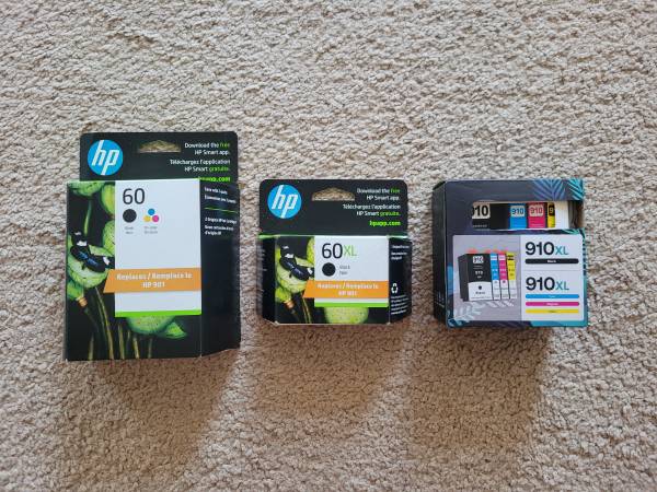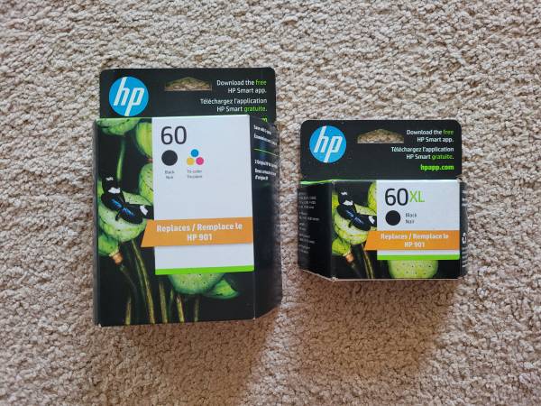 No Emails. For serious inquiry please call or text at (seven-1-four) 9 two 8 -- 4 two five 5. Thank You! OEM New Seal Packed Ink Cartridge HP60 HP 60 Black/Tri-color Ink Cartridges (2 Pack). $40 OBO...