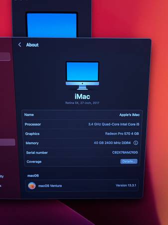 Selling my late 2017 Apple iMac 27" 5k Retina because i’m moving soon and cannot take it with me. Asking for $600 obo. You can call or text me at (7oh3three four5ive9ine 33Oone)