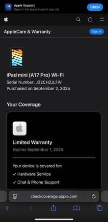 Apple IPad mini (A17 Pro) Wi-Fi Purchased last month, With receipt and accessories