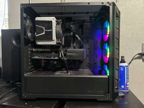 Specs: • CPU: AMD Ryzen 5 3600 (6-Core) • CPU Cooler: be quiet! Shadow Rock 3 • GPU: Gigabyte AORUS RTX 3060 Ti (LHR) • Motherboard: Gigabyte X570 AORUS ELITE (ATX) • RAM: 32GB (4×8GB) DDR4-3600...