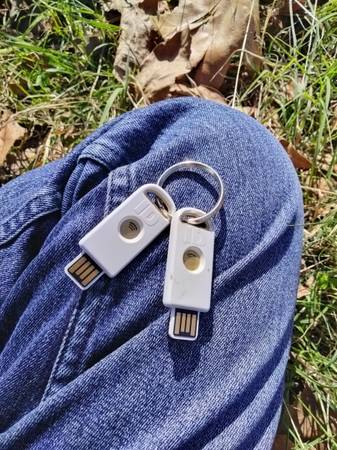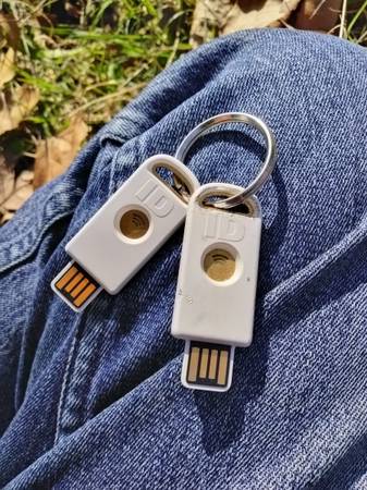 Two very lightly used Fido2 security keys from the local brand Identiv Utrust. These are high quality for 2FA and can work for any of your online necessities like banking, Google, etc etc. they have the NFC tap on your phone capability, USB, and the touch sensor verification. I can deliver for free somewhere near you at a public location (Ralphs, Vons etc).