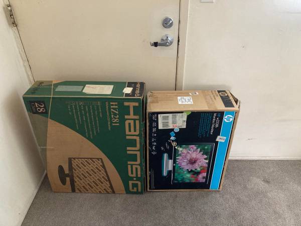 4 available for sale 2 HP 23 inches (2009) 2 HANNS 28inches (2011) moving $25 each (you can buy one or more) Both VGA and HDMI cable