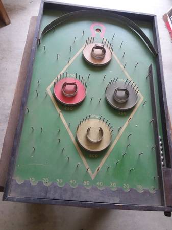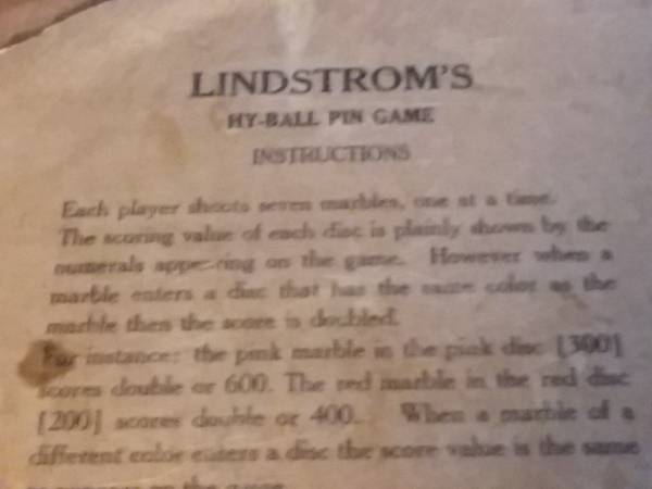 I think the object of the game is to score as many points as possible as you see the balls work their way through a series of nails, once they have been launched....Every player gets 7 balls or tries and I'm really amazed the great condition this game is still in, but even as nice as this is, it is not perfect as I do I see 2 nails missing, and the paint in the field is just a little faded.....