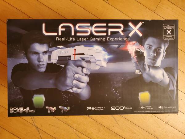 Brand new. Unopened box. Laser X Gaming Double Blasters - 2 Players Set- 200 Feet Range with Voice Coach. Real-Life Gaming Experience. NSI brand. Instruction included. Make a great gift for kids 6+....