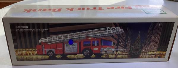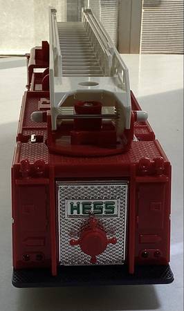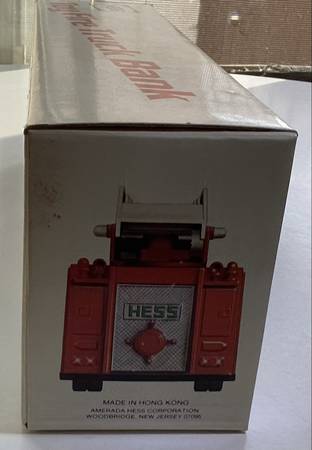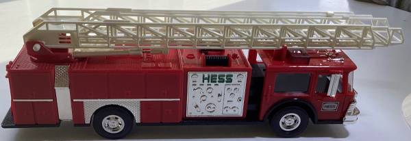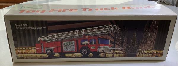 The Perfect Holiday Gift! The second fire truck in Hess toy history is also the first in the fleet to be originally designed as a bank. Making a bold statement in traditional "fire engine red" with lots of chrome detail, the truck boasts an extended cab with brightly flashing emergency lights and headlights and taillights, each operated by individual switches. The extendable three-section aerial ladder swivels 360 degrees and has ratchet gears, which ensure it can be "locked" in place. Stored without batteries. It has all the original inserts.