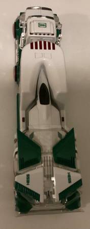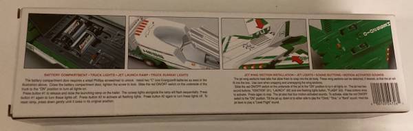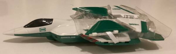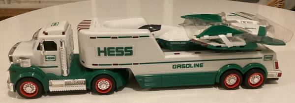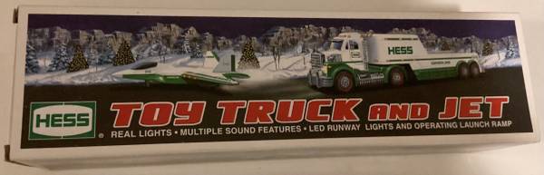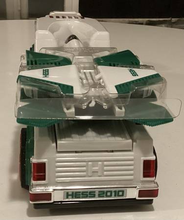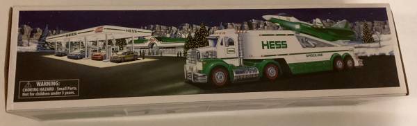 Great Holiday Gift! The Hess Toy Truck takes to the skies again in 2010. The tractor-trailer transporting the sleek fighter-style jet offers plenty of delights, especially the flatbed's hydraulic-lift launch pad, complete with runway lights. The jet - based on an F-22 Raptor - offers a collection of motion-activated sounds that truly demonstrate innovation. Hold it flat to hear a steady engine hum, bank right or left for a shift in tone, or point the nose down and hear the engine scream, suggesting a furious increase in velocity. Has original inserts, batteries stored separately.