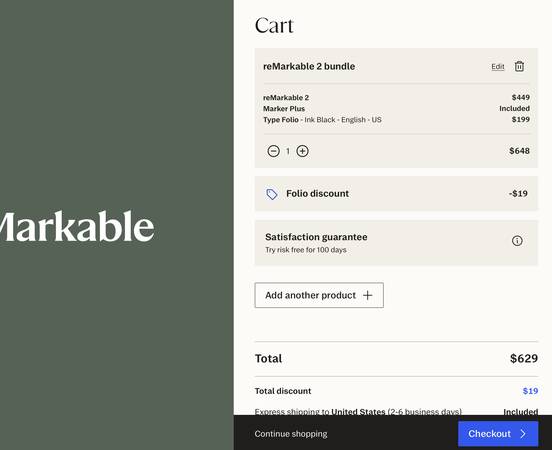 Selling because I upgraded to the newest Pro model. Total value bought new is over $630 plus tax. Comes with: Remarkable 2 Type Folio Marker Plus Spare tips + removal tool Transportation sleeve Get...