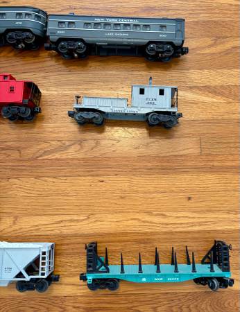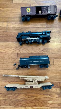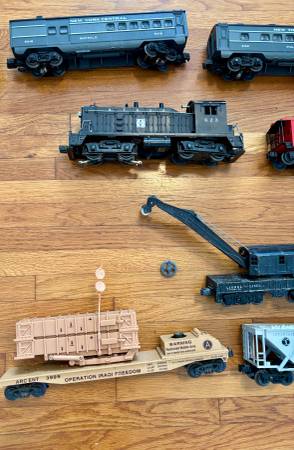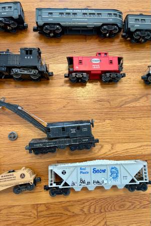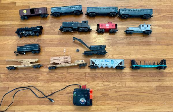 All items are pre-owned with signs of age and play. Some cars show paint rubs and light surface wear. Transformer and locomotives are untested and sold as-is. The older pieces (notably the #623 switcher and #2460 crane) are highly collectible in their own right.