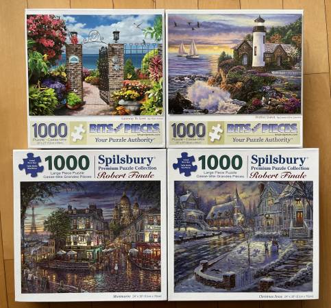 1000 piece puzzles, $5 and up, in perfect condition.