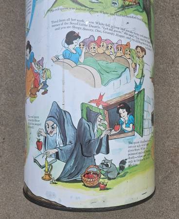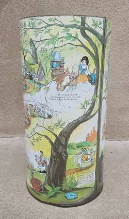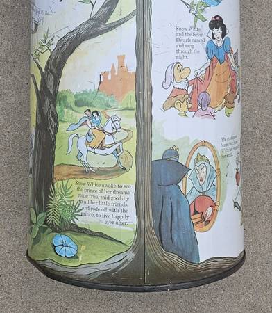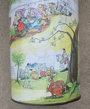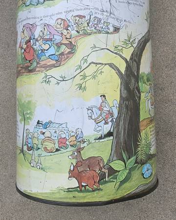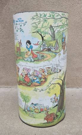 VINTAGE 1970s WALT DISNEY SNOW WHITE 19” METAL TRASH CAN