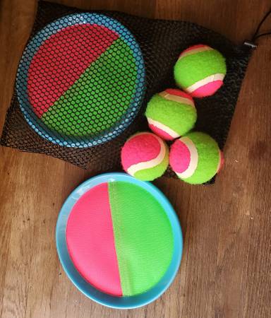 Toss and Catch Ball Set - Paddle Toss and Catch Ball Game - Classic Outdoor Beach Backyard Game for Kids and Adults - 2 Paddles, 2 Balls and 1 Storage Bag. Cash payment, price is final. Text or call.