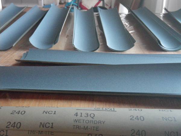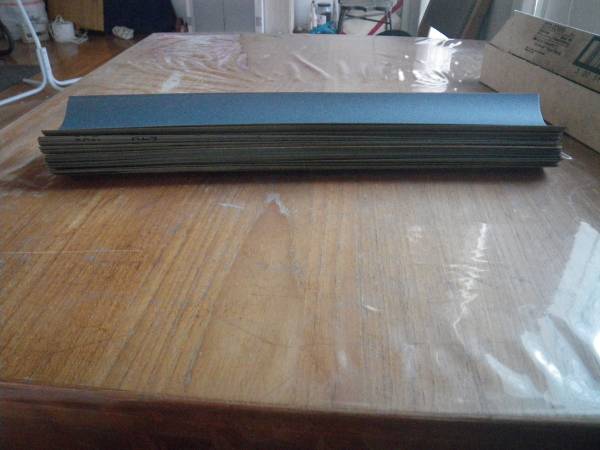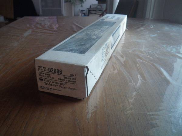 94 SHEETS OF 3M 240 GRIT LONG BOARD SANDPAPER. WET AND DRY PAPER. IN ORIGINAL BOX. I BOUGHT A BOX OF 100 AND ONLY USED 6 SHEETS. THE BEST SANDPAPER FOR AUTO PAINT PREP, AUTOBODY REPAIRS. NO DAMAGE....