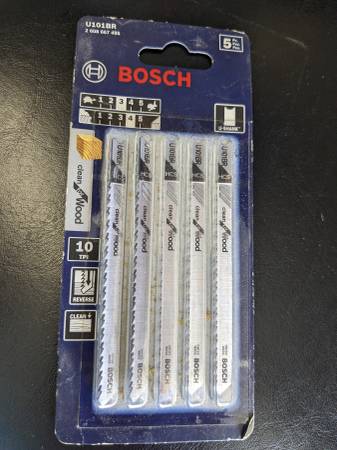 Brand new 5 pack of U101BR Bosch jigsaw blades. 10tpi for wood. U-shank I have lots of tools / materials for sale here. Search "peanut butter" to find other listings.