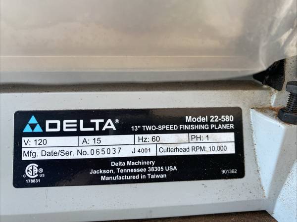 Delta Model 22-580 Vintage 13” 2 Speed Finishing Portable Planer 15 Amp