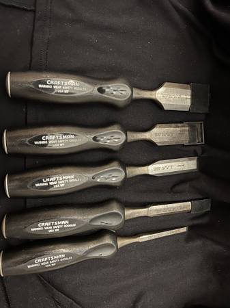 SET OF 5 VINTAGE CRAFTSMAN USA WF CHISELS 5 VINTAGE CRAFTSMAN USA WF CHISELS / VERY NICE Condition: EXCELLENT / AS YOU SEE IT LIVING ROOM / TV CASE / 25 3212