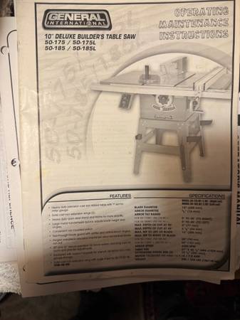 General international 10-inch deluxe builders table saw model 50–185 M1/LM1 left cut New contractor blade, and seal new fine finishing blade, push stick, and other accessories such as the Rigid...