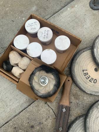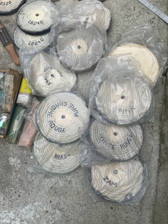 You get every thing shown in the photos. It comes on a delta stand with the retractable wheel set. It includes all the buffing wheels and compounds shown. The paste compounds are more than like dried out by now so just showing them for reference- all came from Jants Supply Inc. out of Oklahoma. You should be able to get more compounds a wheels from them - they are a great supply company and nice people.
