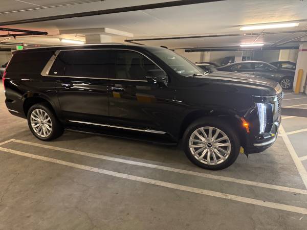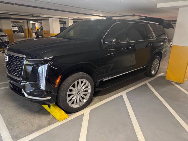 An Experienced Uber Black driver is wanted to join my fleet and drive a 2025 Cadillac Escalade ESV Luxury. This vehicle has a $96K MSRP and features an expansive 55-inch curved display with Google built-in, AKG audio systems, Super Cruise driving, and full running boards.
