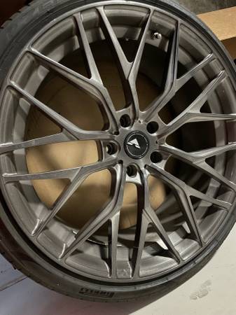 One set of 21" staggered wheels that fit my 2017 Tesla Model S The tires are done but the wheels are perfect. I can get the old tires taken off if needed. These wheels new were $2,500 EACH plus tax and shipping (about $12,000 for the set new without tires)