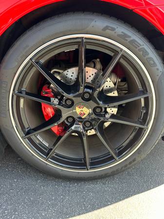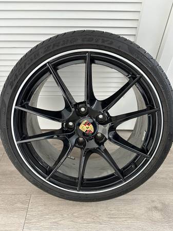 Selling the original wheels off my NARROW BODY 2015 Porsche 991 911. Recently switched from black to silver wheels. These are in pristine shape - no curb rash and only one small chip on one rim (see pic.) Includes the Porsche center cap with colored crest, original Porsche TPMS sensors, valve stems, and tires. The front tires are in good shape, less than 10,000 miles on them. The rear tires have about 20,000 miles on them, they are not bald, but they are originals from 2015. Let me know if you have any questions. Could put them on your car and go. Located in Santa Monica. Pickup only please. Wheel sizes are 8.5x20 ET51 and 11x20 ET70. Asking $1,800 obo.