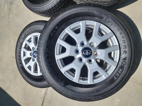 New 2025 Toyota Tacoma 17" wheels rims tires 4runner land cruiser Brand new take offs Perfect condition Firestone tires 245 70 17 Only fits new Gen TOYOTA Need adapters for old gen $400 No offers...
