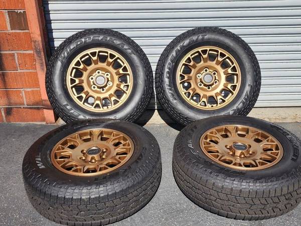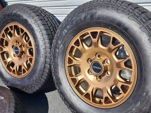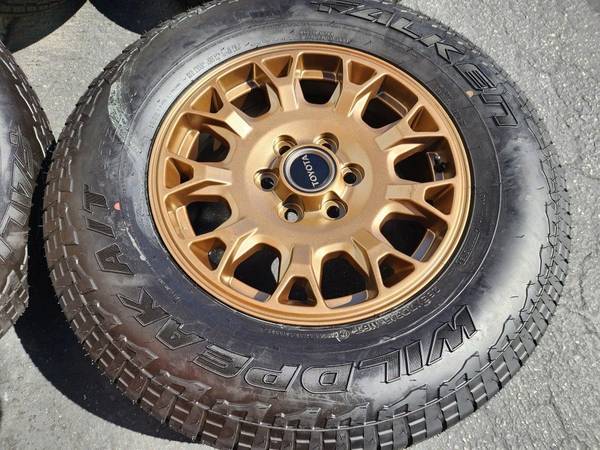 New 2026 18" TOYOTA TACOMA TRD 4RUNNER TUNDRA SEQUOIA LAND CRUISER GX550 WHEELS RIMS TIRES Brand new take-offs Flawless condition Bronze gold powder coat Factory OEM Toyota wheels 265 70 18 Falken...