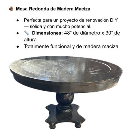 📏 Dimensiones: 48” de diámetro x 30” de altura
